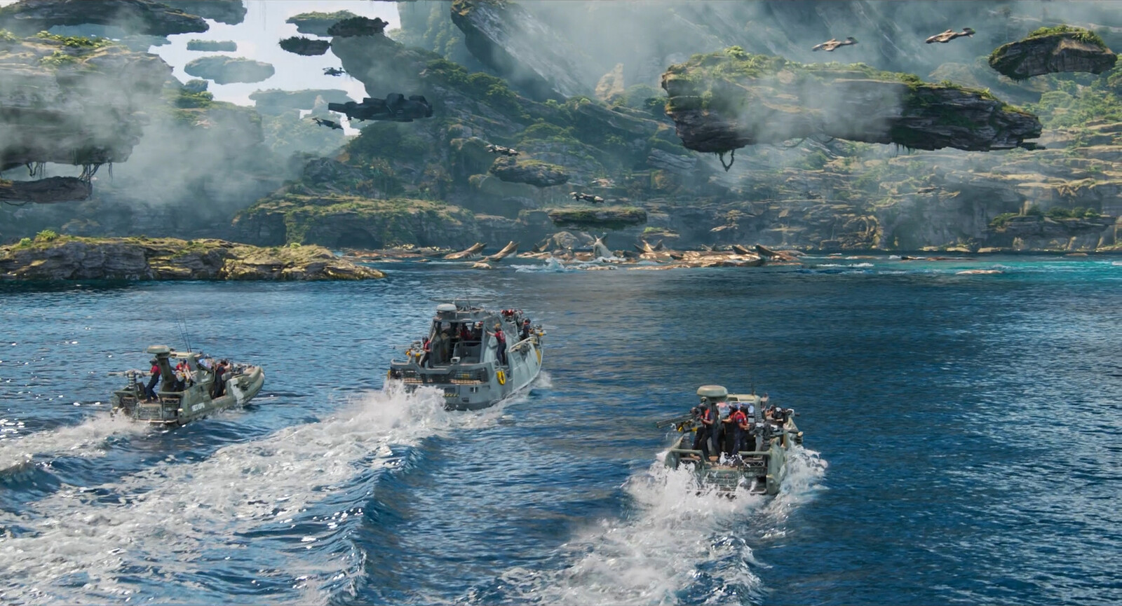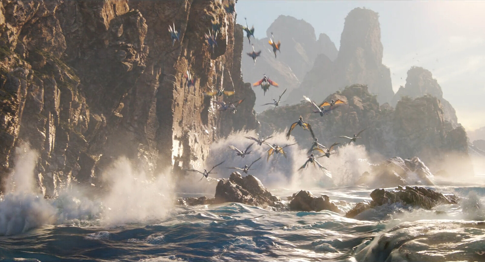 Set dressed background foliage and vegetation across floating rocks, islands, and coastal cliffs using Wētā FX’s in-house procedural tools.